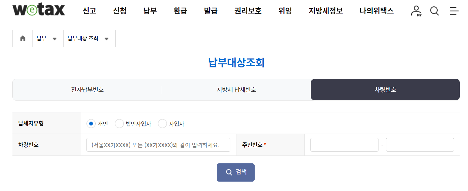 위택스는 전국 지방세를 신고/ 납부 서비스로 자동차 관련 납부도 담당하고 있습니다.