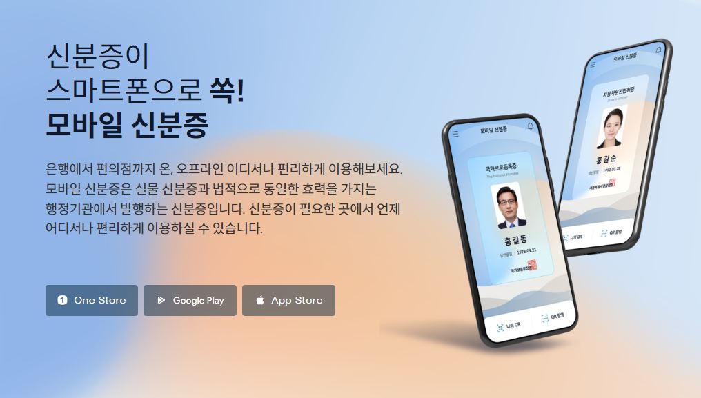 모바일 신분증은 두 가지 신분증이 있습니다. 첫 번째는 모바일 운전면허증이고, 두 번째는 모바일 국가보훈등록증입니다. 2025년부터는 주민등록증도 모바일로 발급이 가능하다고 합니다.