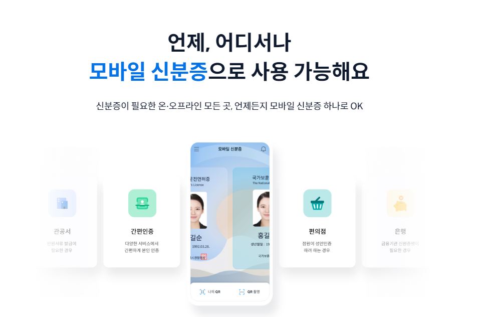 모바일 신분증은 실물 신분증과 비교하여 편의성과 안전성이 우수한 스마트폰을 기반으로 디지털화된 신분증을 도입하여 온라인이나 오프라인에서 신원확인할 수 있는 용도로 활용됩니다.