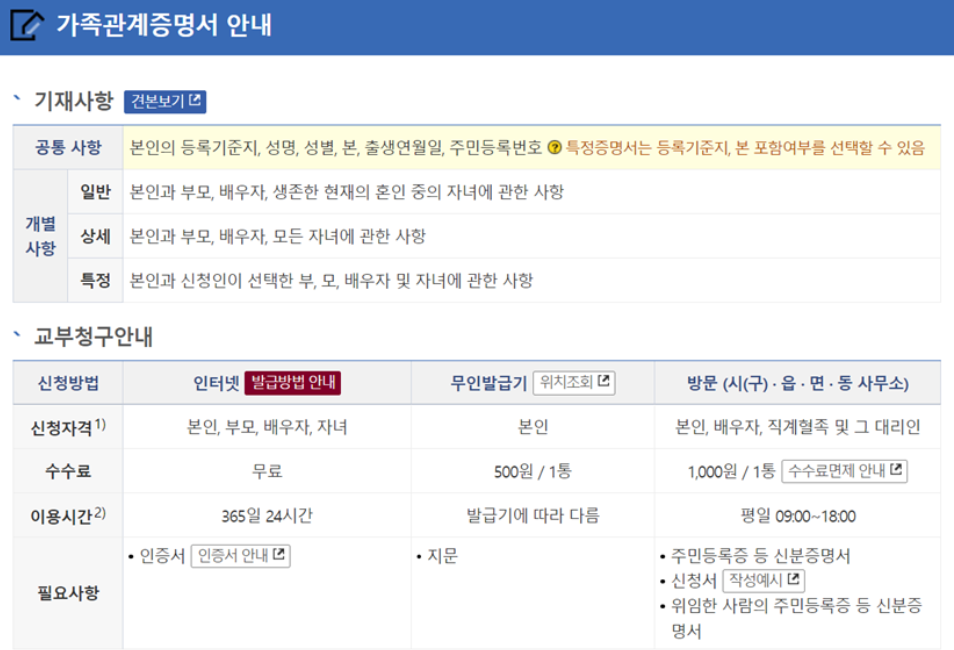 가족관계증명서 발급은 온라인과 오프라인에서 발급이 가능합니다.